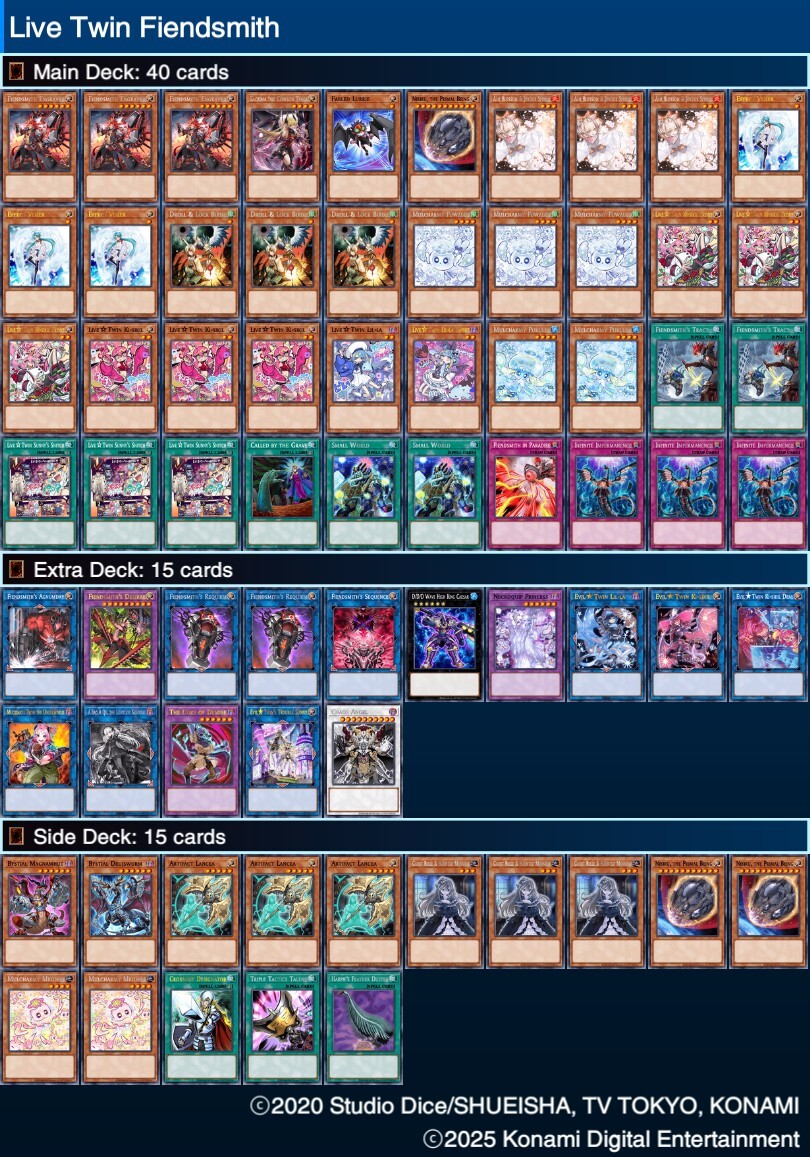O segundo motivo é que eu não tava gostando muito de como o deck tava construído (na versão sem pré-preparation; com pré-preparation sofre mais ainda pro Droll). Como eu comentei no post anterior, o deck tinha algumas redundâncias que não se ajudavam tanto, apenas Prayers pareada com algum monstro de Mitsurugi era completamente absurdo. Tirando isso, a jogada sempre depende do Habakiri tributando Saji passar, e se tomasse alguma interação nisso (basicamente Ash e Droll) matava a engine inteira, o que me sobrava o Fiendsmith. E ainda tem o problema do Fuwalos, que basicamente me deixa jogar só de Mitsurugi, e nunca transicionar para o Fiendsmith. Ainda no último dia antes do torneio, eu vi outra versão do Mitsurugi Fiendsmith que me agradou muito, e me balançou um pouco sobre qual deck usar. Era uma versão com mais cartas de Mitsurugi, tendo Pré-Preparation com Aramasa e Kusanagi (diferente da ideia do Mitsurugi do último post que eu fiz), e com a adição do Futsu (o vídeo do Joshua Schmidtz me abriu os olhos sobre o uso dessa carta e do quão importante ela pode ser no deck mais puxado pro Mitsurugi). Mas, como eu não tive tempo de testar, eu decidi abandonar a ideia, e partir pro Live-Twin mesmo.