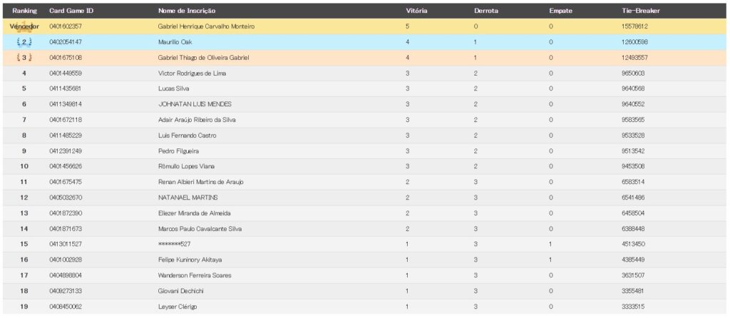 Para começar a falar sobre o torneio em si: foram 5 rodadas de suíço com corte para o Top8. Além disso, os decks do Top8 foram: