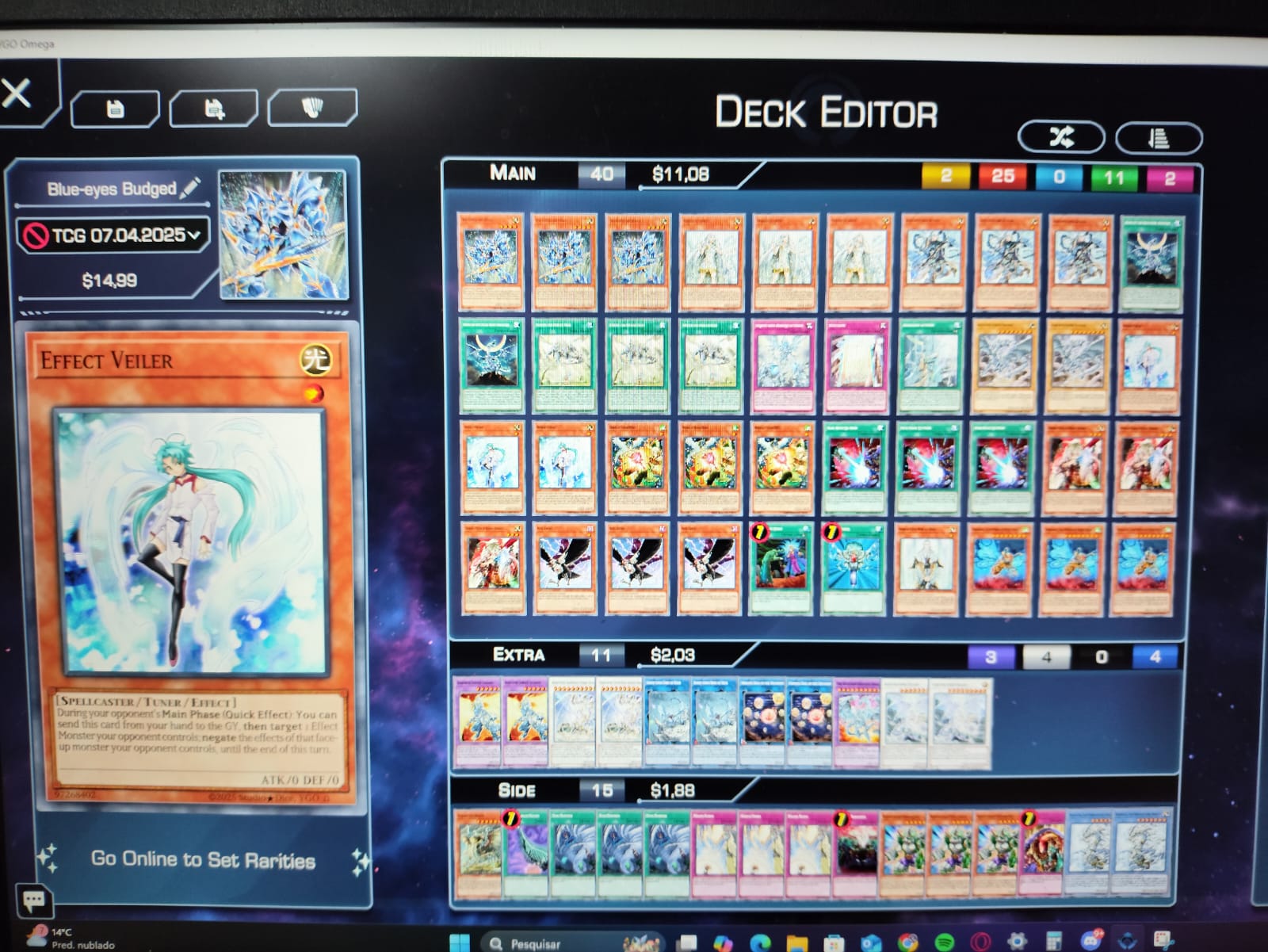 Esse jogo eu brickei totalmente, 3 lancea, crossout e veiler. Até consegui enrolar 2 turnos, mas ele tinha 4 hand traps e 2 jogadas, e a derrota foi inevitável.