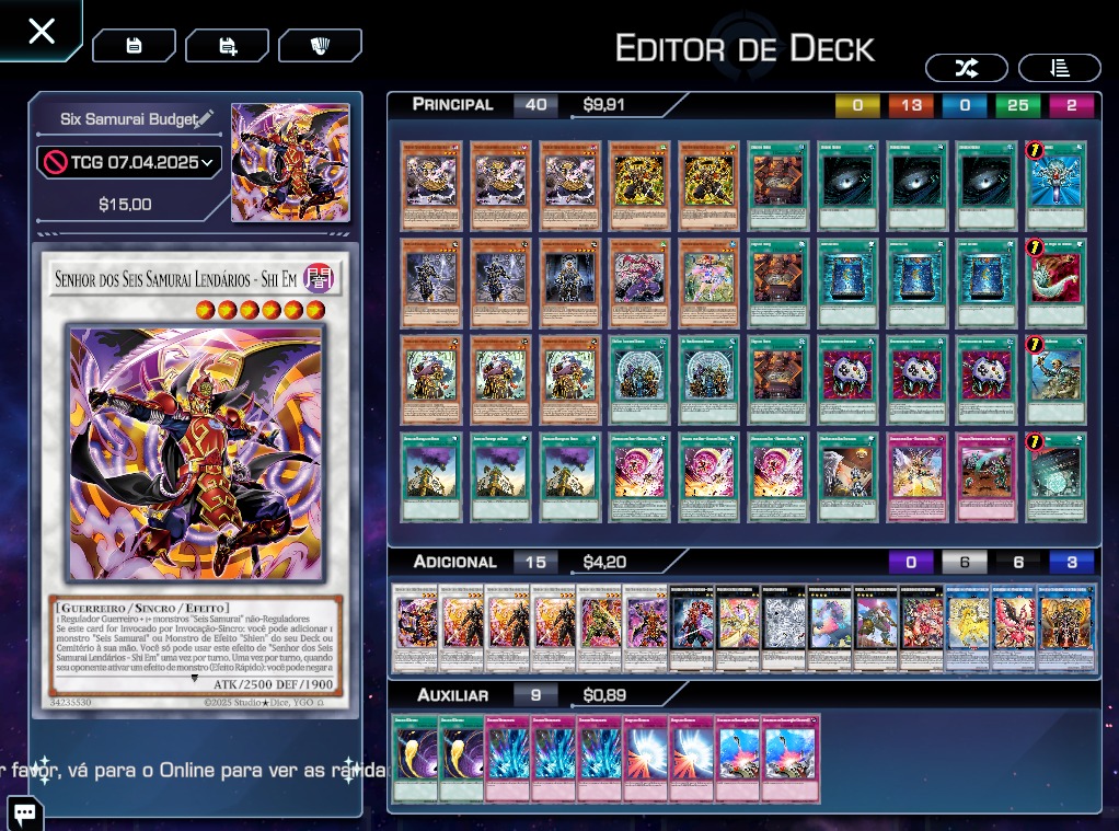 Primeiramente vou apresentar o deck que eu usei no OTS e foi a base do deck que eu usei no regional e fazer algumas considerações sobre ele.