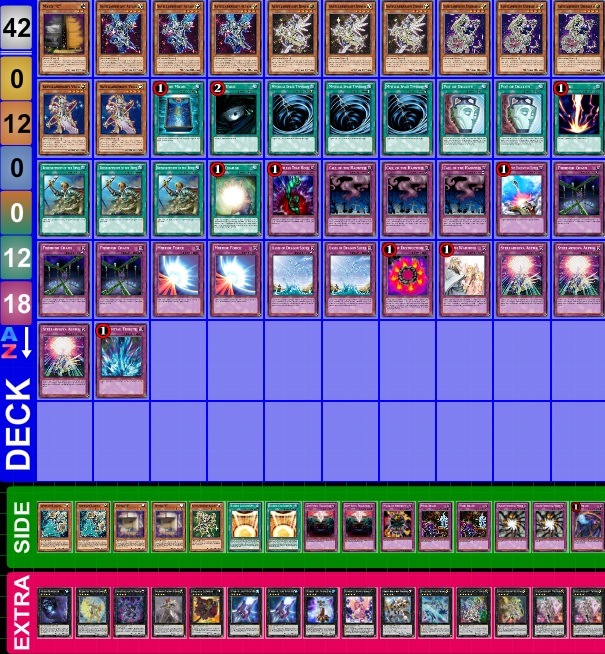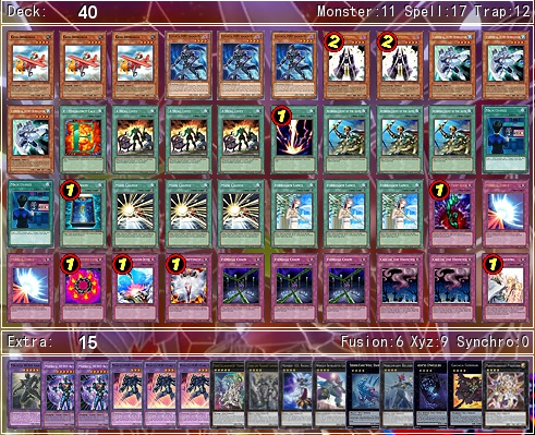 Meu deck para esse torneio foi bastante baseado na matchup contra satellar, pois como vocês podem ver é o deck que geralmente aparece em maior quantidade por aqui e também é uma das piores match-ups devido ao stellarknight triverr e ao Stellarknight Constellar Diamond. Aconteceu que eu não enfrentei satellar nem ao menos uma vez durante o torneio todo, então não consegui comprovar se o esforço inicial deu certo.